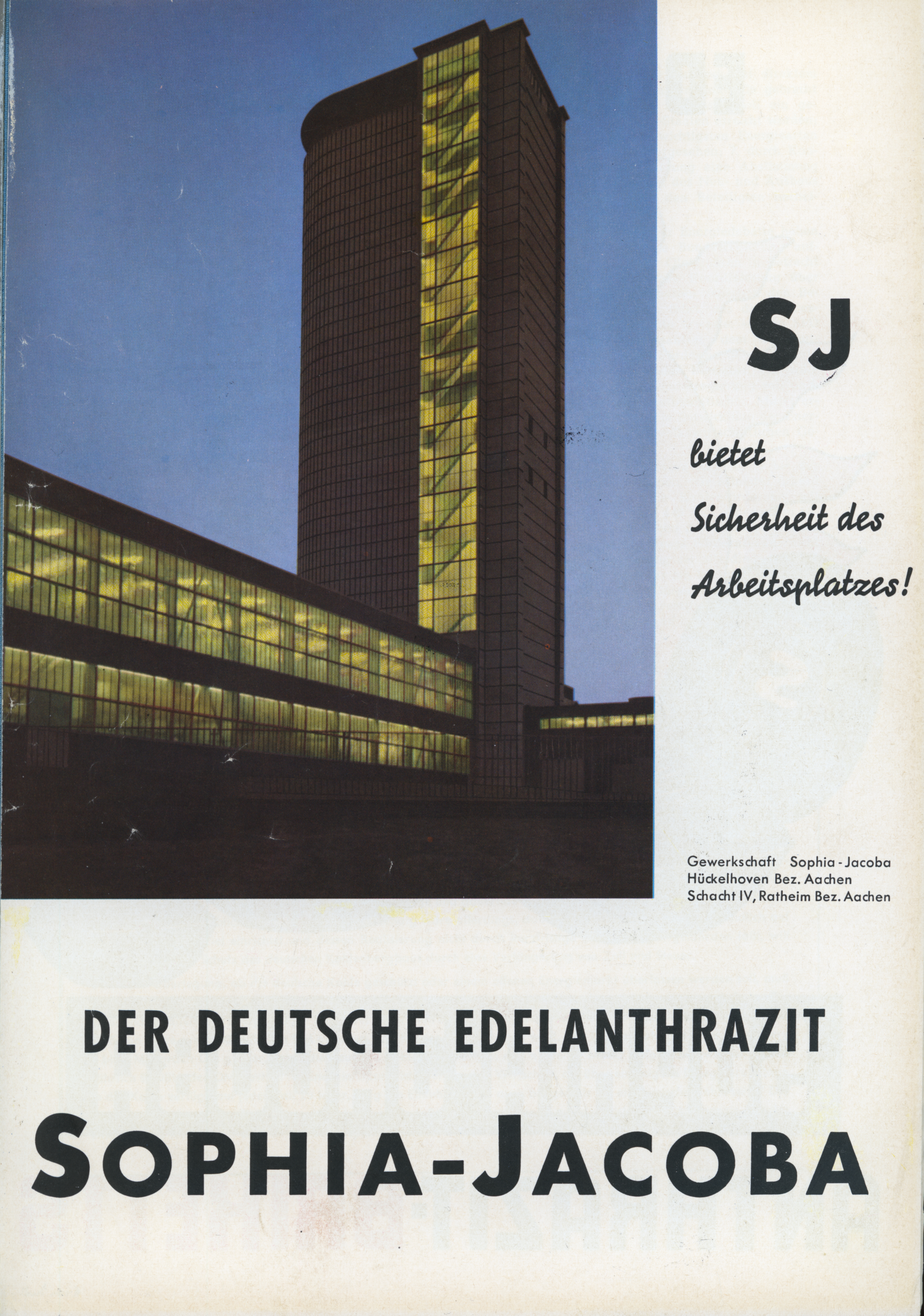 Am heutigen Tage übergeben wir unserer Belegschaft wieder eine Werkszeitung. Sie wird die Angehörigen der Gewerkschaft Sophia-Jacoba und ihre Familien über alle wesentlichen Vorgänge unterrichten, die mit dem Werk und ihren Arbeitsplätzen zusammenhängen. Darüber hinaus soll sie zeigen, welche Aufgaben dem Unternehmen in der deutschen Volkswirtschaft und im Rahmen der Montanunion gestellt sind. Die Erhaltung und Weiterentwicklung unserer Gewerkschaft ist ein gemeinsames Anliegen von Werksleitung und Betriebsfamilie. Die Belegschaft hat deshalb ein Recht zu erfahren, welche Wege gegangen werden, um den Bestand des Unternehmens und damit der gegenwärtigen und künftigen Arbeitergeneration von Sophia-Jacoba das Brot zu sichern.
